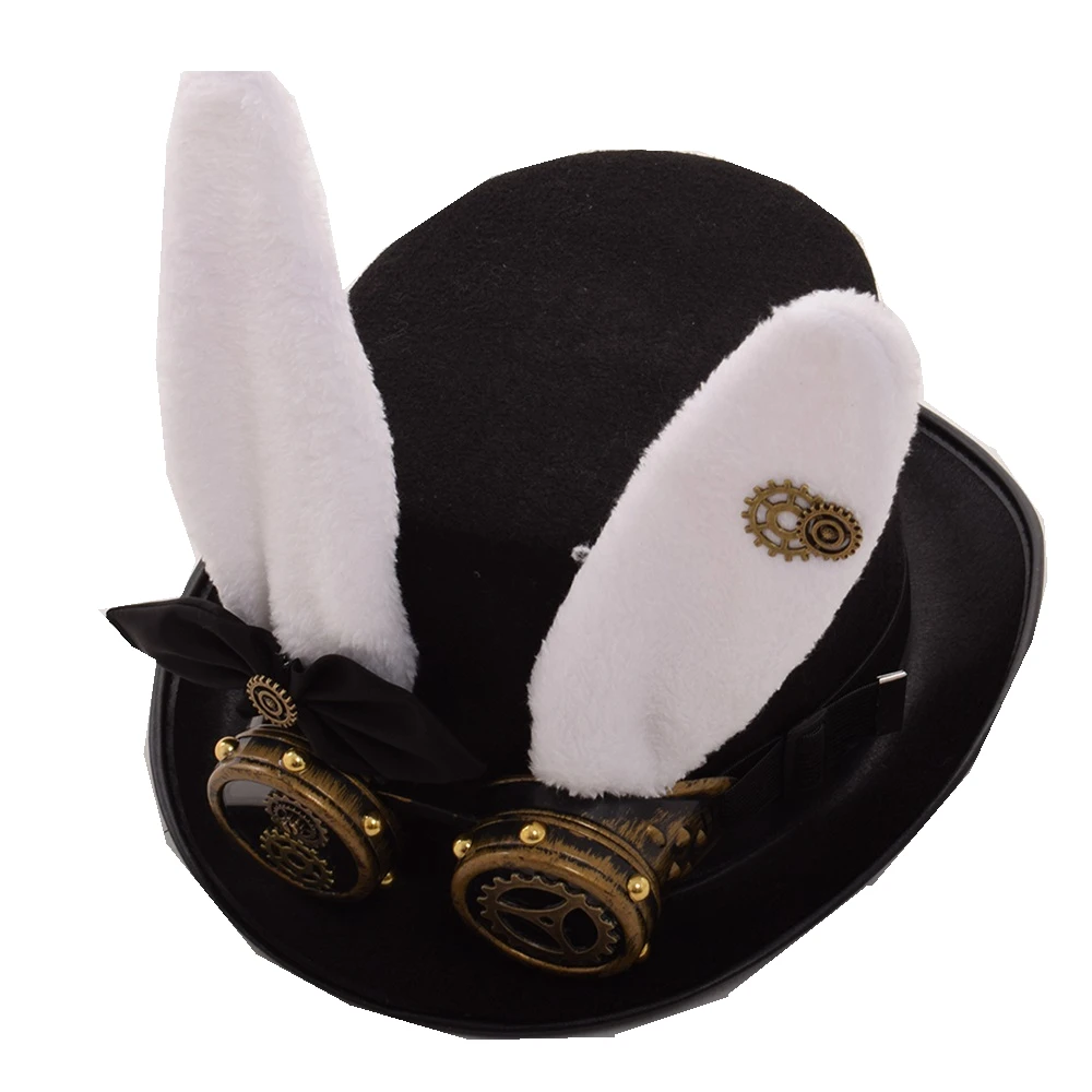 - Sombrero Steampunk Vintage para mujer, sombrero de fiesta Punk Lolita, engranaje de oreja de conejo, gafas góticas, sombrero de Fedora