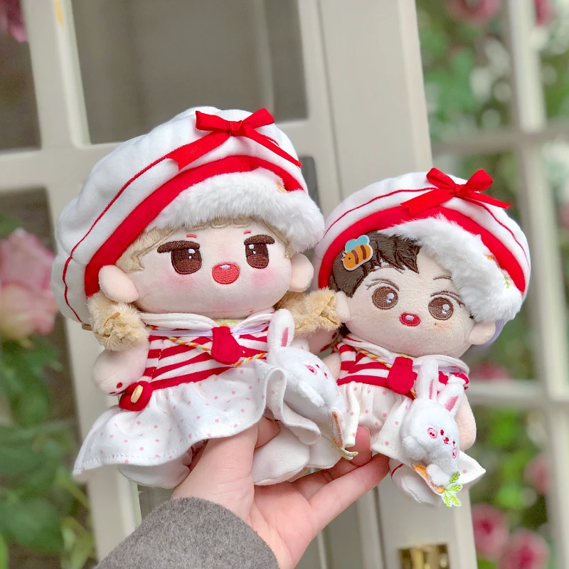 2. Conjunto de 4 unid set de conejo de fresa hecho a mano, ropa de muñeca Kawaii, sombrero rosa, mono, calcetines, cuello cuadrado, traje de muñecas de felpa de 20cm Product Id: 1005004584412404 |