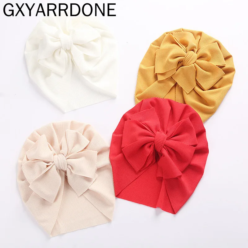 - Diademas para recién nacidos, turbante acanalado sólido con nudo de conejo, gorros para bebés, gorros elásticos finos a rayas, 2021