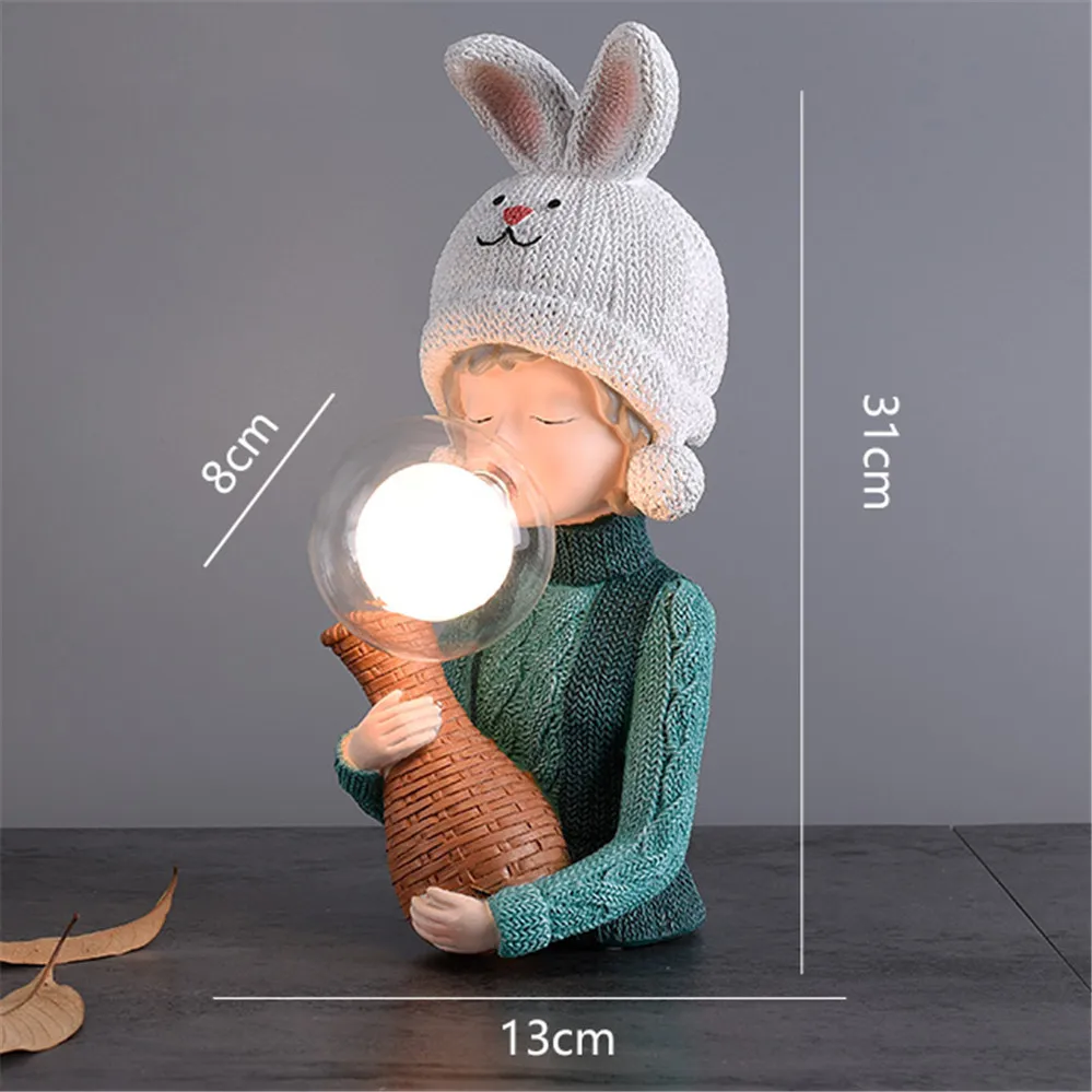 - Florero nórdico Ins, sombrero de conejo, lámpara de mesa Led de resina Art Deco para niños, dormitorio, sala de estar, luces creativas de pie para cabecera