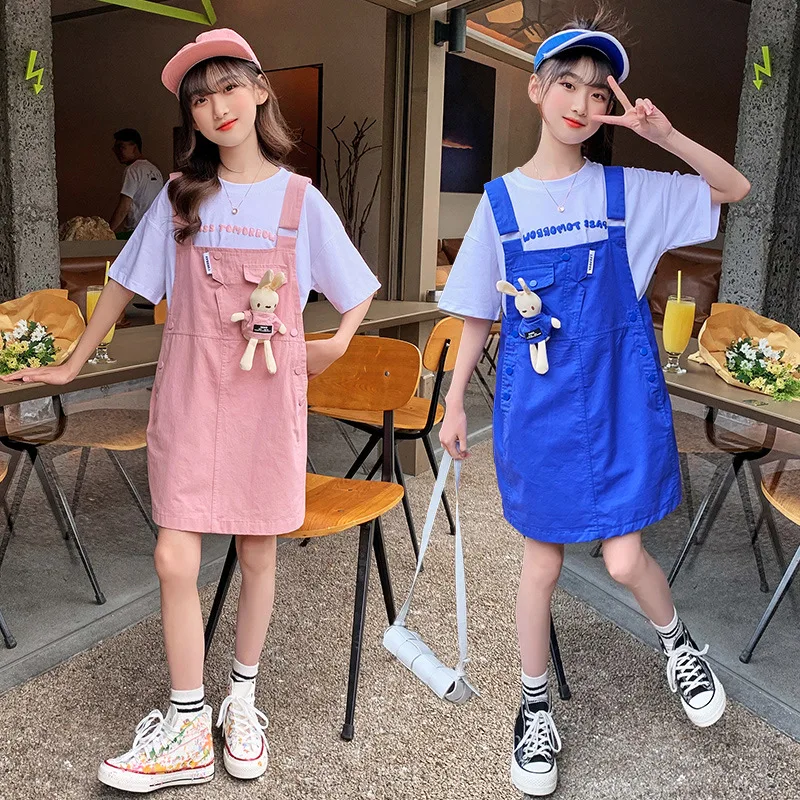 - Ropa de verano de ocio para adolescentes, pantalones cortos de conejo, camiseta + tirantes, falda, Mono para niños de 5, 8, 11, 12, 13 y 14 años, 2022