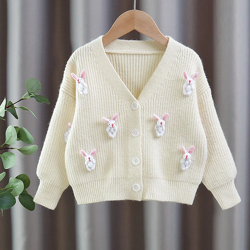 3. Cárdigans para niñas pequeñas, ropa de primavera, suéter bonito de conejito, prendas de vestir, Tops de punto, 1, 2, 3, 4, 5, 6, 7, 8 años