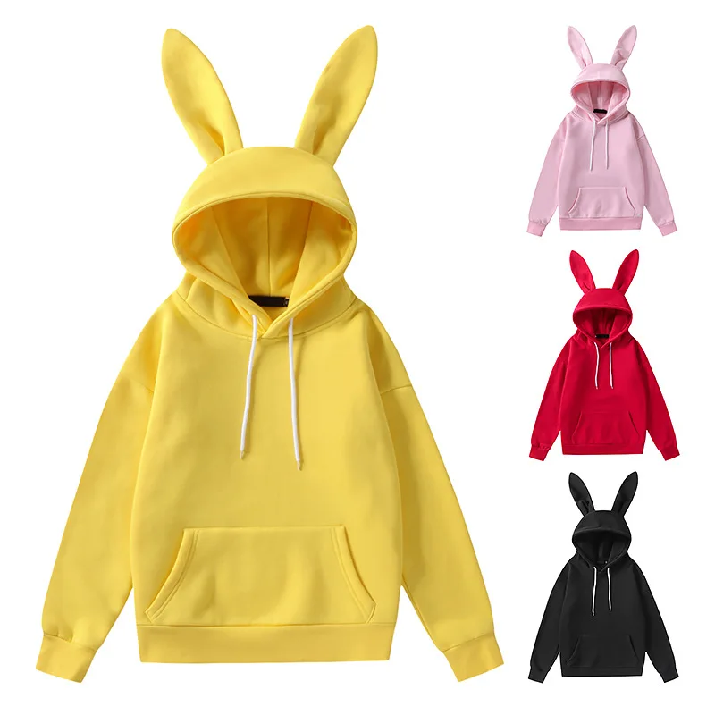 4. Sudaderas con capucha para mujer, suéter Harajuku informal, Sudadera con capucha y orejas de conejo, ropa de calle de gran tamaño rosa y amarillo, 2021